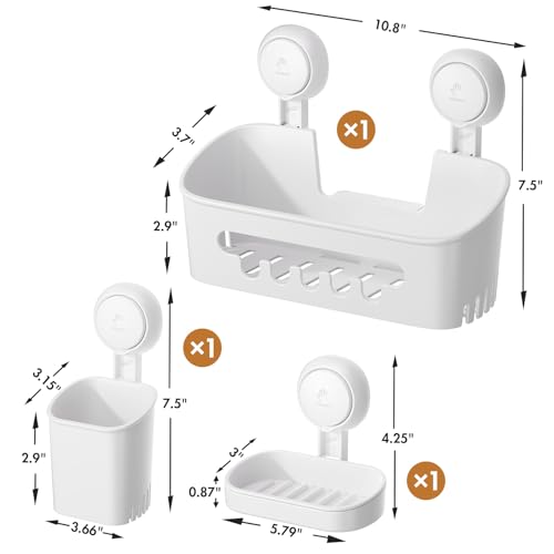 TAILI Portaoggetti da Doccia e Portaspazzolino e Portasapone a Ventosa per Cucina, Bagno, Camera da Letto, Ventosa Organizzatrice in Plastica Rimovibile Senza Trapano