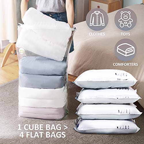 Sacchi Sottovuoto Cubi: Riceverete 8 confezioni di sacchi sottovuoto (80x100x38cm). I sacchi sottovuoto TAILI sono così spaziosi che possono contenere 3-5 trapunte, coperte, piumoni, lenzuola, vestiti con una superficie di fondo aggiuntiva. Un sacchi sottovuoto jumbo cube ≥ quattro sacchi sottovuoto normali.