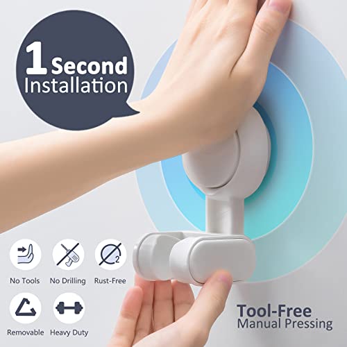 TAILI Supporto per soffione doccia a ventosa senza foratura, impermeabile e regolabile in altezza, staffa per bagno, ampio angolo regolabile bianco
