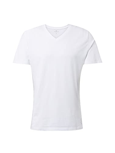 TOM TAILOR 1008639, Maglietta Basic in Confezione Doppia con Scollo a V Uomo, Bianco (White 20000), S