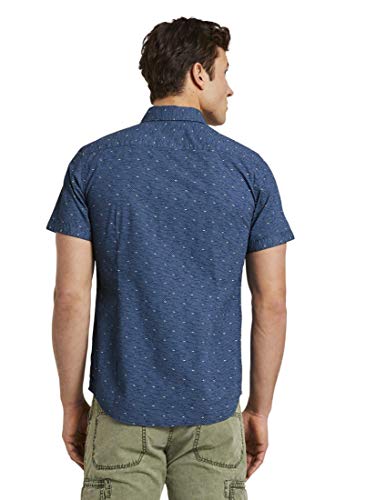 TOM TAILOR Camicia a Maniche Corte a Fantasia, Uomo, Blu (Navy Blue White Grid Design 23771), S