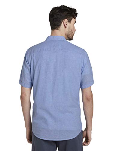 TOM TAILOR Camicia a Maniche Corte in Misto Lino, Uomo, Blu (Sky Blue Chambray 11869), S