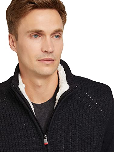 TOM TAILOR Cardigan con Colletto Alto e Chiusura Lampo, Uomo, Nero (Black Grey Melange 10617), S