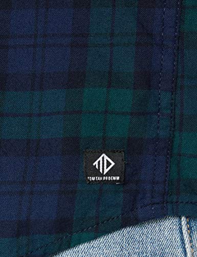 TOM TAILOR Denim Camicia in Flanella a Quadretti, Uomo, Blu (Blue Green Tartan Check 25606), XXL