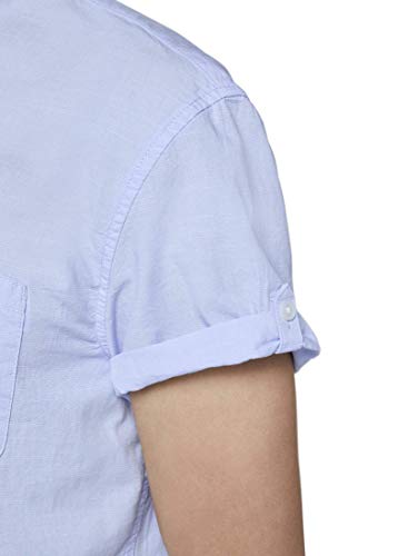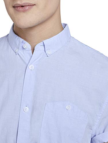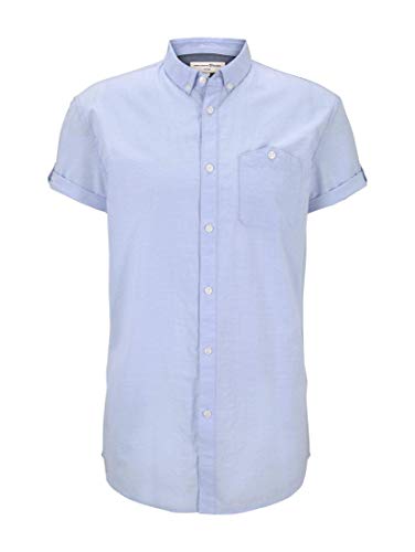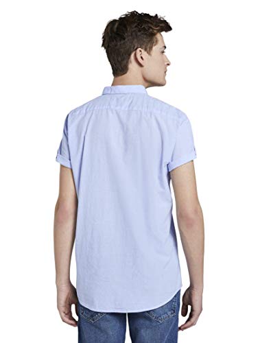 TOM TAILOR Denim Camicia a Maniche Corte con Tasca sul Petto, Uomo, Blu (Light Blue Slub Stripe 18922), M