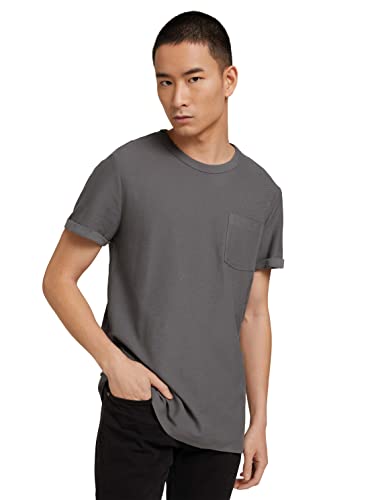 TOM TAILOR Denim Maglietta Basic con Tasca sul Petto, Uomo, Grigio (Quiet Mid Grey 15180), M