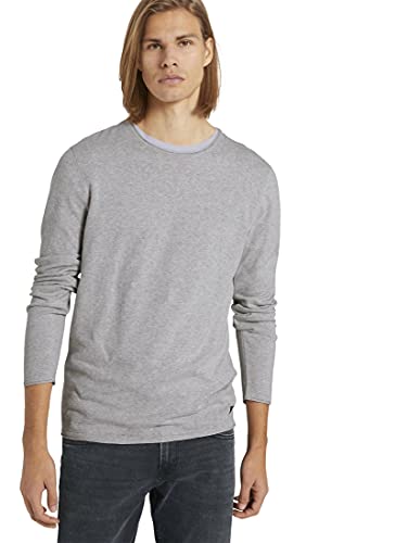 TOM TAILOR Denim Maglietta a Maniche Lunghe Effetto Mélange, Uomo, Grigio (Light Stone Grey Melange 15398), XL