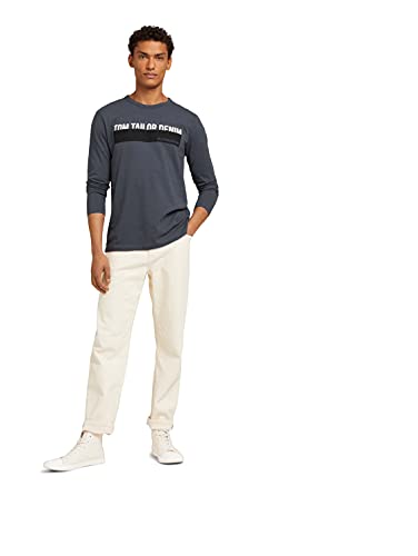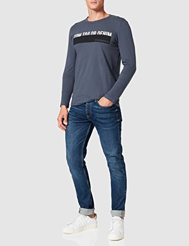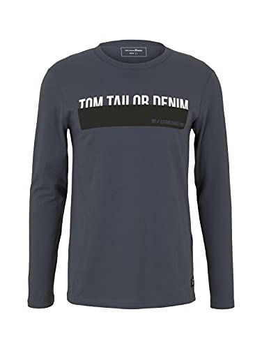TOM TAILOR Denim Maglietta a Maniche Lunghe con Stampa, Uomo, Grigio (Blueish Grey 10306), L