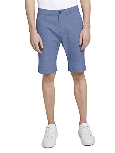 TOM TAILOR Denim Pantaloncini in Lino Chino Slim in Lino, Uomo, Blu (Blue Non Solid 26330), L