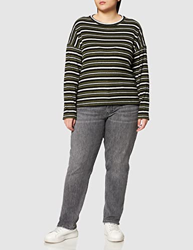 TOM TAILOR Denim Le signore Maglietta a maniche lunghe a costine 1029362, 28580 - Olive Black Stripe, L