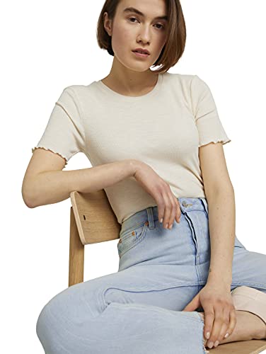 TOM TAILOR Denim Le signore Maglietta strutturata 1025672, 22515 - Soft Creme Beige, L