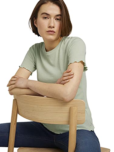TOM TAILOR Denim Le signore Maglietta strutturata 1025672, 26677 - Light Dusty Green, L