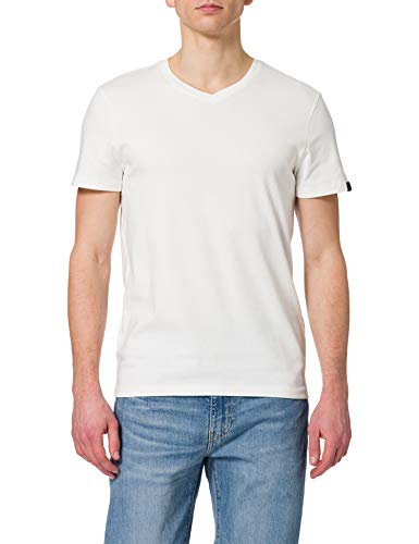 TOM TAILOR Maglietta Basic con Scollo a V, Uomo, Bianco (Light Marsmallow 10551), M