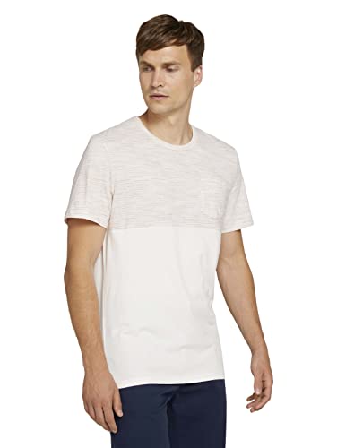 TOM TAILOR Maglietta a Righe con Tasca sul Petto, Uomo, Bianco (Off White 10332), XXL