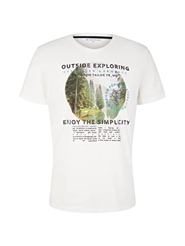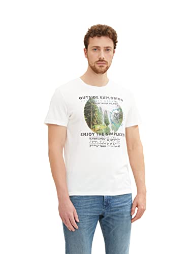 TOM TAILOR Maglietta con Stampa Fotografica, Uomo, Bianco (Offwhite Snow Melange 30402), XL