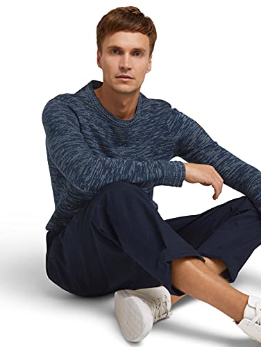 TOM TAILOR Maglione in Cotone Biologico, Uomo, Blu (Navy Blue Shades Structure 28586), XL