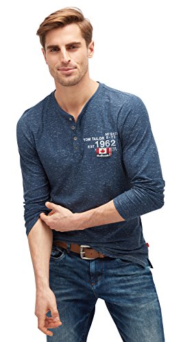 TOM TAILOR Melange Henley with Artwork Maglia a Maniche Lunghe Uomo