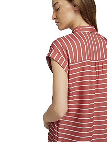 TOM TAILOR Le signore Camicia a maniche corte a righe 1020539, 28041 - Red Offwhite Stripe, 36