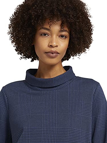 TOM TAILOR Le signore Felpa a quadretti con collo alto 1028761, 28673 - Navy Blue Check, XL