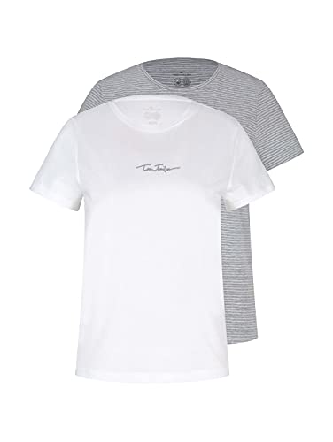 TOM TAILOR Le signore Maglietta in cotone biologico in confezione doppia 1027571, 10315 - Whisper White, XL