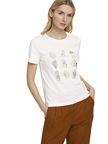 TOM TAILOR Le signore T-shirt con stampa in cotone biologico 1025849, 10315 - Whisper White, L