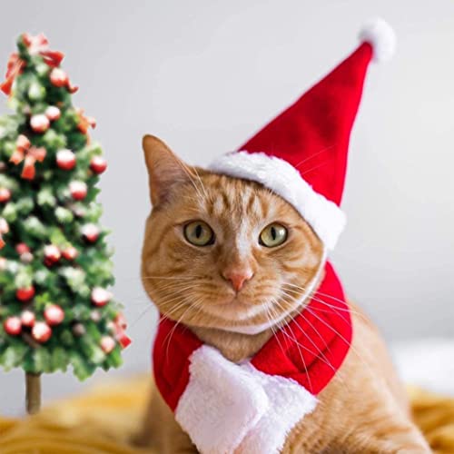 【Taglia】 Cappotto natalizio per animali domestici: 37 x 18 cm, cappello da Babbo Natale 12 x 17 cm, sciarpa calda: 16 x 19 cm, adatto per la maggior parte dei gatti e dei cuccioli.