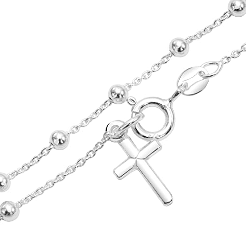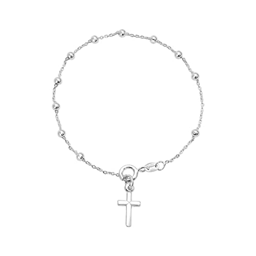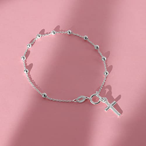 TAIPAN Bracciale da donna in argento, con rosario e croce, collana e bracciale da donna, piccolo regalo per mamma, ragazza e fidanzata, argento 925, 19 centimeters, Argento, Senza pietra
