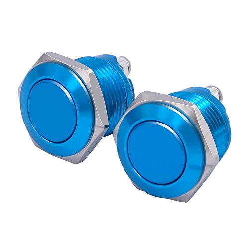 Taiss, 2 interruttori momentanei in metallo da 16 mm, 1 NO SPST 3 A/12 - 250 V, per auto industriali, blu