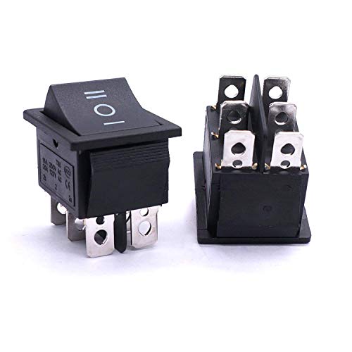 Taiss 5 pezzi interruttore a bilanciere 3 posizioni DPDT ON/OFF/ON 6 Pin Interruttore a Levetta,220-250VAC Universale,per Auto,Camion,Elettrodomestici KCD2-203-BK
