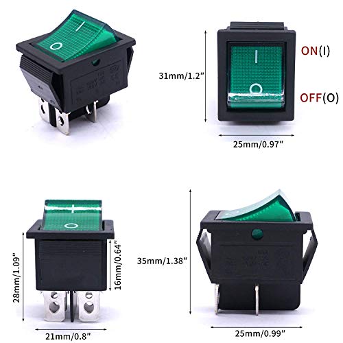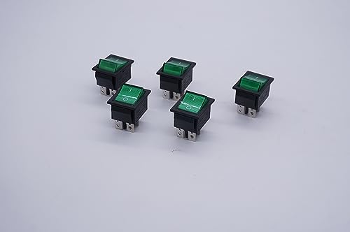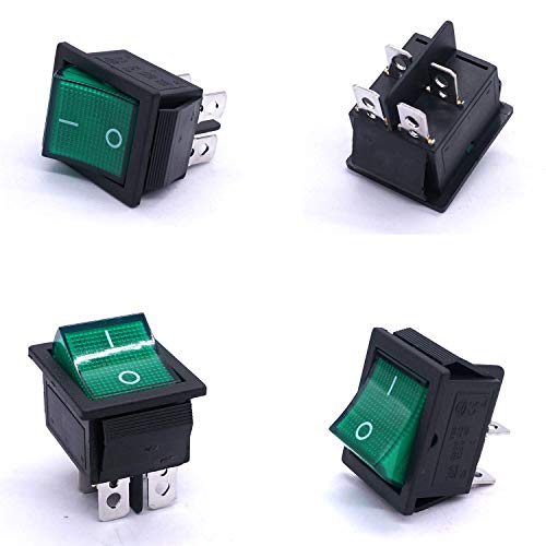 Taiss 5 pezzi interruttore a bilanciere 2 posizioni DPST ON/OFF 4 Pin con verde Luce a LED,220V-250VAC Universale,per Auto,Camion,Elettrodomestici KCD2-201N-G