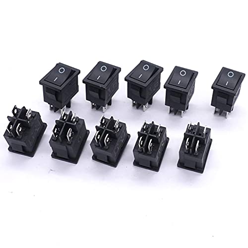 Taiss 10 pezzi interruttore a bilanciere 2 posizioni DPST ON OFF 4 Pin mini Interruttore a Levetta 10A 220-250VAC Universale,per Auto,Camion,Elettrodomestici KCD1-4-201-BK