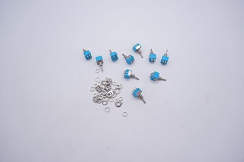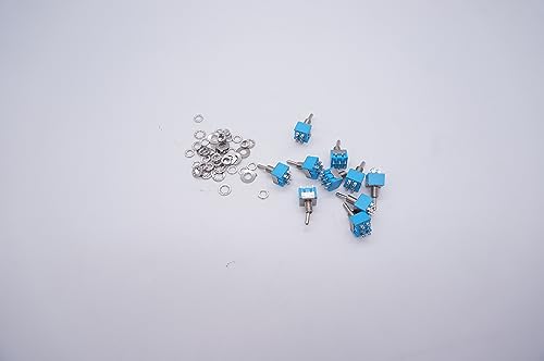 Taiss 10 pezzi Mini Interruttore a levetta ON/ON 2 Posizioni 6 Pin DPDT Metallo Interruttore a Bilanciere a levetta 6A 125V AC Blu per Automobile,casa MTS-202