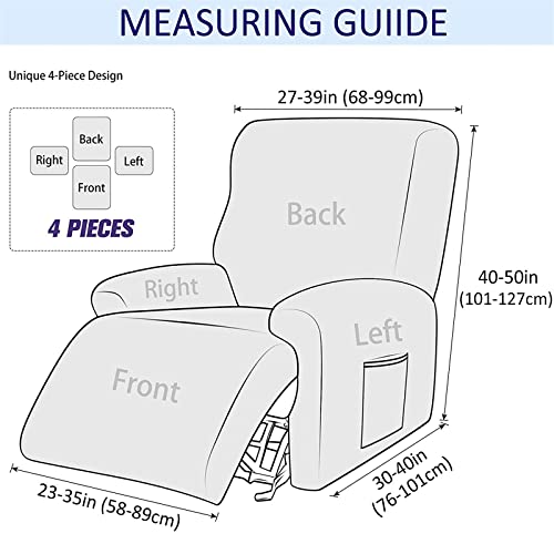-4 PEZZI: questo prodotto include 1 fodera per lo schienale, 1 fodera per sedile e 2 fodere per braccioli. Il design con coperture separate si adatta molto meglio alle poltrone reclinabili. Facile da installare, cucita con spessi passanti elastici per coprire i bordi inferiori, altamente consigliata sia per divani in pelle che in tessuto.