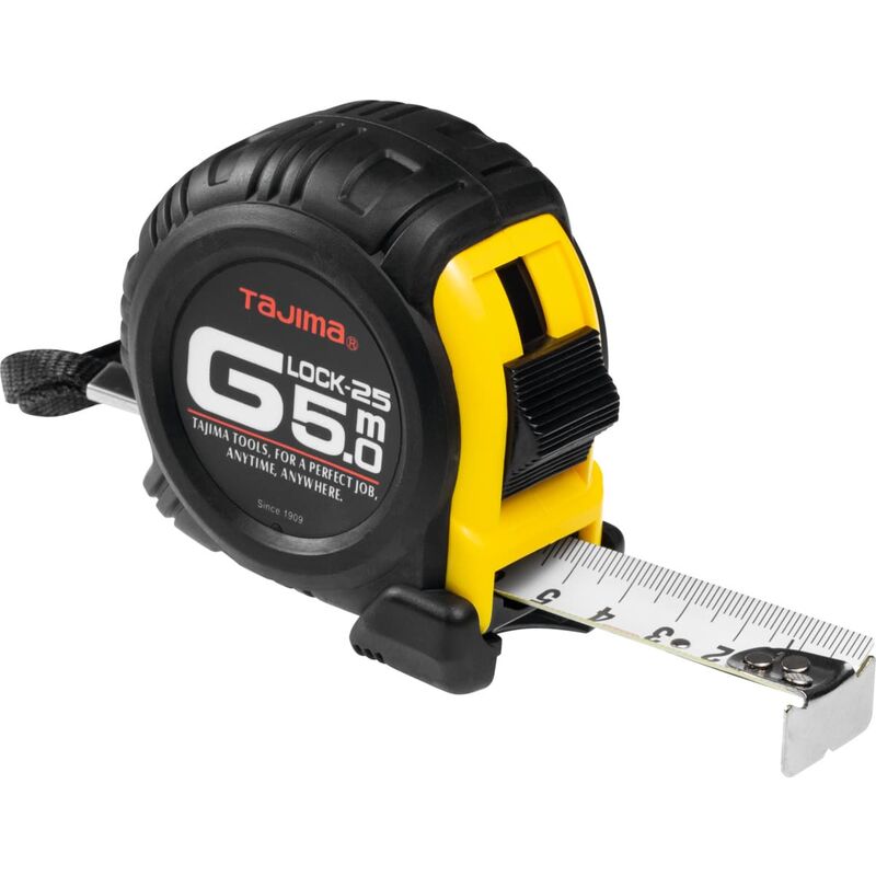 Flessometro G-Lock molto robusto con protezione custodia extra resistente. Custodia antiscivolo. Gancio terminale per lo scorrimento a rivettatura tripla. Ritorno e bloccaggio automatici del nastro. L'ammortizzatore riduce il carico nella corsa di ritorno. Graduazione di facile lettura sul lato anteriore e posteriore. Nastro giallo, stampato in rosso / nero e rivestito in acrilico per garantire un'elevata resistenza all'abrasione. Inclusa clip da cintura. Dati tecnici Tipo di prodotto Flessometro Taratura G1 Altezza corpo, mm 59 Norma EG II Larghezza del nastro, mm 16 Larghezza corpo, mm 25 Lunghezza corpo, mm 63