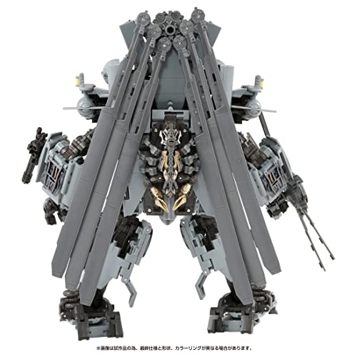 La confezione include una figura Decepticon pressofuso di conversione alta 29 cm, 2 accessori blaster gatling, 2 effetti di esplosione e una figura Scorponok non convertibile.