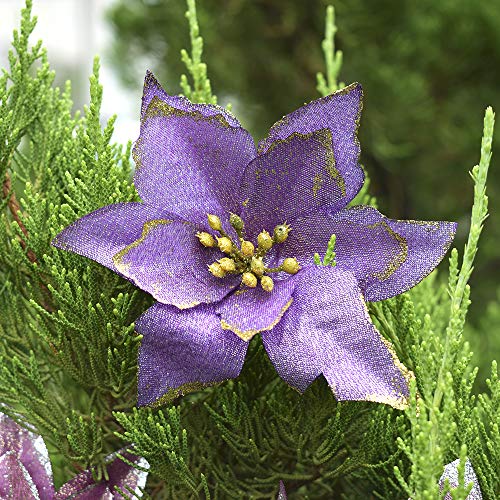 Takefuns 10 pz Glitter Poinsettia Christmas Tree Ornaments Pendente Artificiale Wedding Christmas Flowers Xmas Tree Wreaths Decor Ornament, Purple