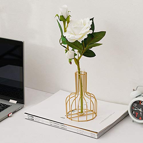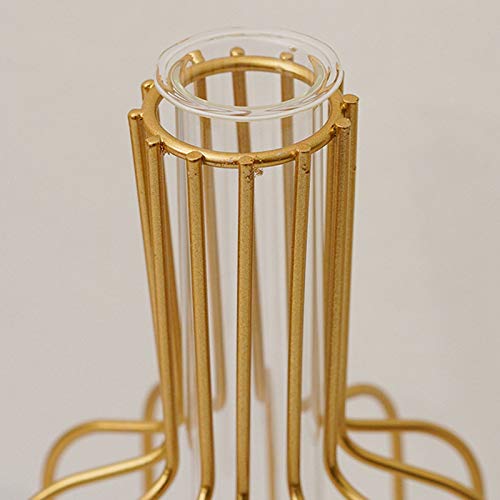 Takefuns Vaso da fiori in metallo vaso di vetro vaso fioriera terrari, vaso con cornice dorata per piante idroponiche, vaso da tavolo trasparente per casa, cucina, ufficio, decorazione