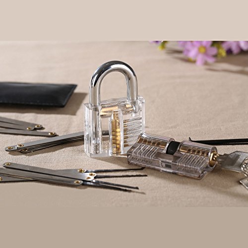 ✅ CONTENUTO DELLA CONFEZIONE: il set di strumenti per il lockpicking include 12 grimaldelli e 3 chiavi dinamometriche, un lucchetto trasparente con 2 chiavi, un doppio lucchetto a cilindro trasparente con 2 chiavi, 1 lussuosa custodia in pelle.