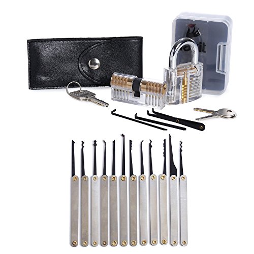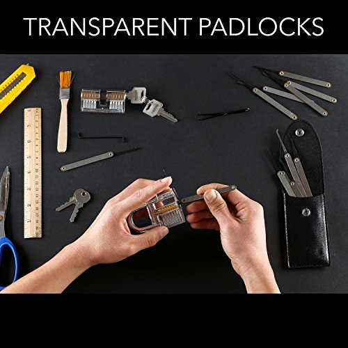 TAKIT Grimaldelli 15 Pezzi Set per il Lockpicking Con 2 Lucchetti Trasparenti Per Praticare/Allenarsi - Kit per il Lockpicking Con Custodia in Pelle - Manuale Ebook