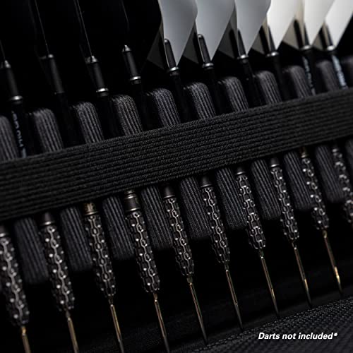 Può contenere fino a 8 set di freccette con un sacco di spazio per accessori come alette e altre attrezzature.
