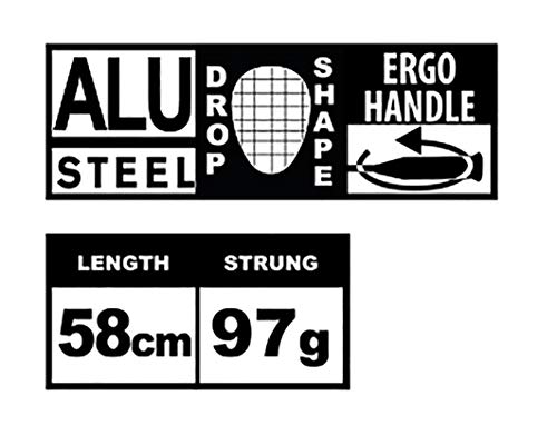 Lunghezza della racchetta di solo 58 cm, età consigliata: 6-8 anni, maneggevole e leggerissima (97 grammi), robusta e durevole