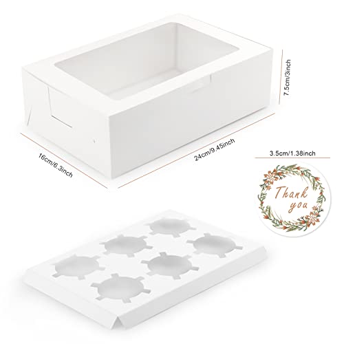 Talifoca Confezione da 10 Scatole per Cupcake, Scatola per Muffin con Finestra Trasparente E Adesivi, Robusta Scatola di Cartone Bianca per Decorare Torte e Trasporto Cupcake, 6 Fori