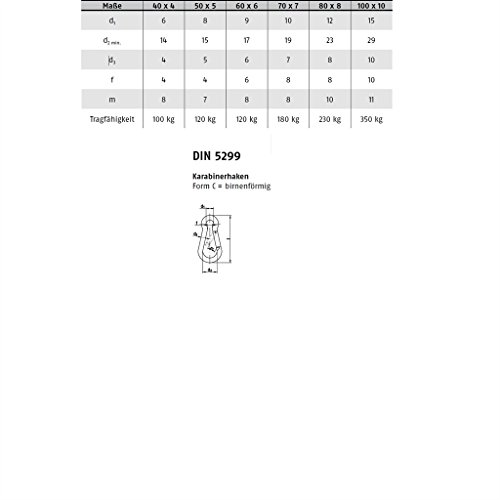 Talk-Point, 10 ganci con moschettone, in acciaio zincato secondo le norme DIN5299, in diverse misure, 40mm x 4mm