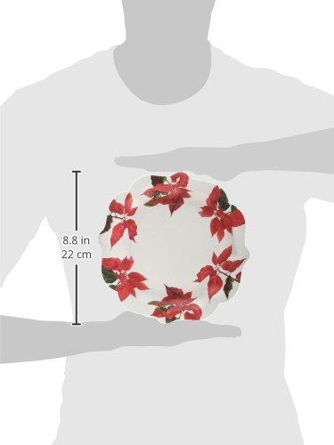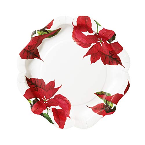 Talking Tables Botanical Poinsettia Design Piatto di Carta 27,9 cm per Feste e cene di Natale, Rosso e Bianco (12 Pezzi)
