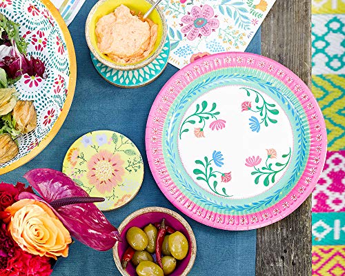 Questi piatti di carta a tema boho sono disponibili con 3 diversi disegni floreali.