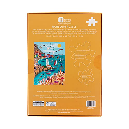 Talking Tables Puzzle a vela da 1000 pezzi con poster abbinato | Design colorato in riva al mare per compleanno, regali per adulti, Colore Puzzleharbour, PUZZ-PMU-HARBOUR