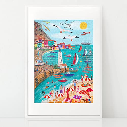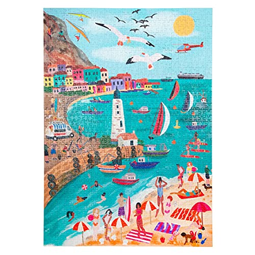 Contenuto: questo puzzle da 1000 pezzi viene fornito con un poster abbinato e presenta una città balneare con barche a vela, prendisole e gabbiani