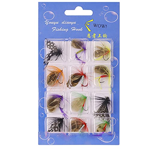 Taloit Mosche secche per pesca a mosca, 12 pezzi, kit di mosche per pesca a mosca e salmone trote mosche galleggianti affondando esche da pesca