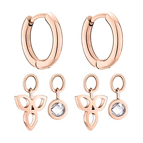 Materiale: acciaio inossidabile IP oro rosa lucido, pietra zirconia, dimensioni: 1,9 cm, chiusura: a incastro