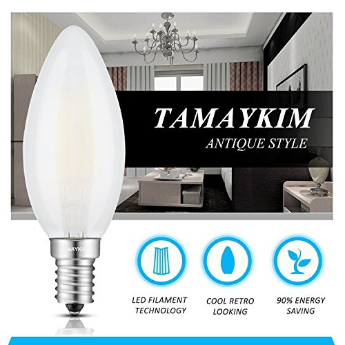 TAMAYKIM C35 4W Dimmerabile Filamento Lampadina LED Candela - 4000K Bianco Naturale 400 lumen - 4W equivalente a 40W - Attacco E14 - Siluro Forma - Frosted Vetro - 360° Angolazione Fascio Luce - 6 Pezzi